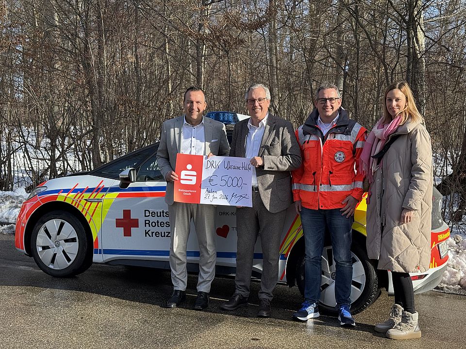 Die Kreissparkasse Ostalb hat die Ukrainehilfe des DRK-Kreisverbands Aalen mit einer Spende in Höhe von 5.000 Euro unterstützt. Die Spendenübergabe unterstreicht das gemeinsame Engagement für Menschen, die vom Krieg in der Ukraine besonders betroffen sind. Vor Weihnachten hatte das DRK zu einer Spendenaktion aufgerufen, an der sich zahlreiche Firmen und die Bevölkerung beteiligt haben.